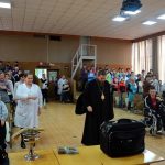 После приветствия и поздравления детей с праздником и после представленного ими рождественского концерта, Владыка рассказал об истории праздника Рождества Христова, прочитал вместе с детьми молитву «Отче наш» и окропил их святой водой.