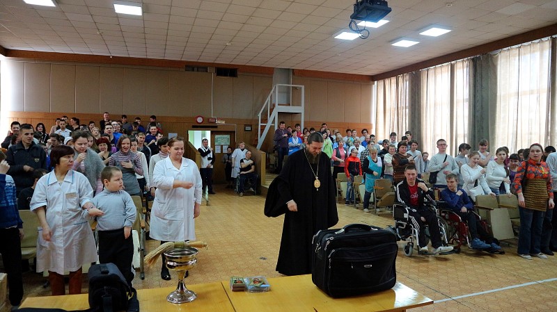 11 января/среда. Владыка с протоиереем Александром Гришиным посетил Обской дом инвалидов, в котором в данный момент проживают 300 человек.