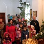 Утром в храм пришли родители с детьми на Рождественскую елку. В храме перед началом концерта спели рождественские песнопения, тропарь и кондак праздника. В цокольном помещении родителей и детей ждала рождественская елка и праздничный обед.