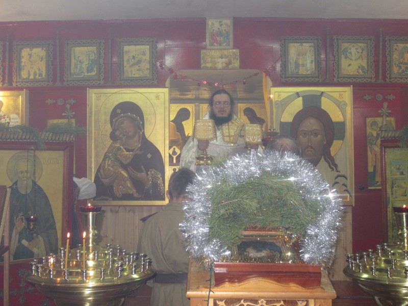 В нашем храме в рождественскую ночь традиционно совершается богослужение. Прихожане, невзирая на зимнюю стужу, стремятся подобно волхвам поклониться Богомладенцу Христу из разных уголков нашего района. Они приносят в дар Господу восковые свечи, благодарность и покаяние.