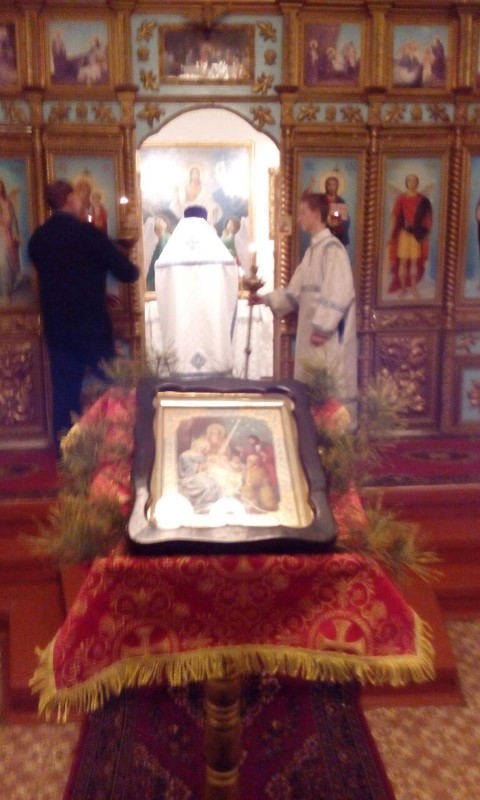 Иерей Роман поздравил всех присутствующих со светлым праздником Рождества Христова, пожелав всем Божией благодати. За богослужением были зачитаны поздравления от Преосященнейшего Филиппа, епископа Карасукского и Ордынского, и от митрополита Тихона.