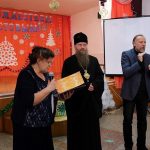 После концерта епископ Лука и епископ Филипп поздравили детей с праздником, окропили их святой водой и раздали календари, иконы и рождественские подарки.