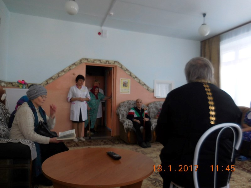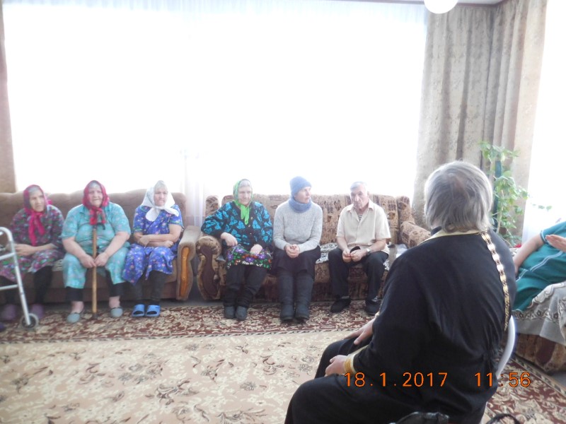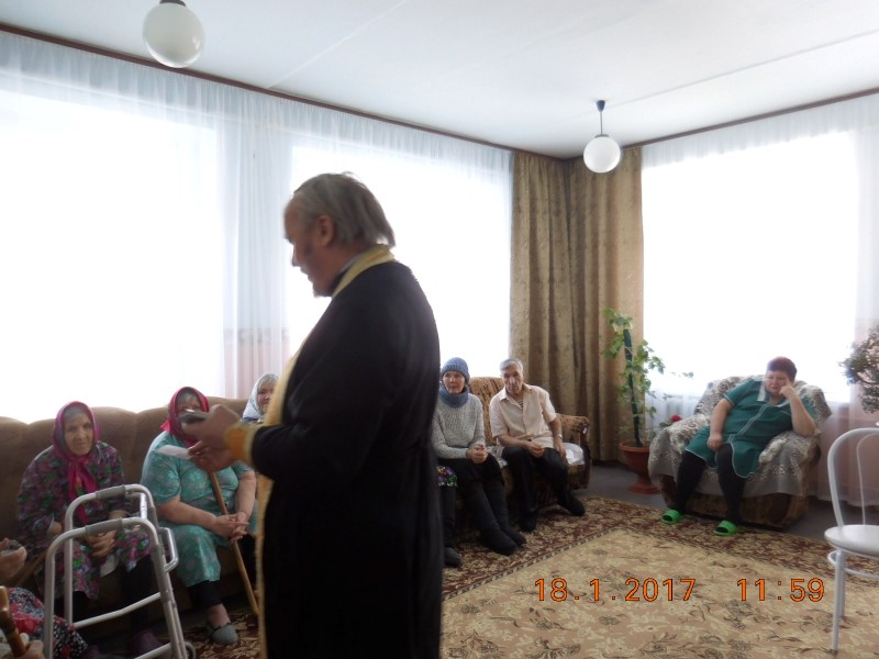 18 января после Литургии и великого освящения воды протоиерей Александр Лупарев побеседовал с жителями и медперсоналом Комаринского дома милосердия и поздравил всех с праздником.