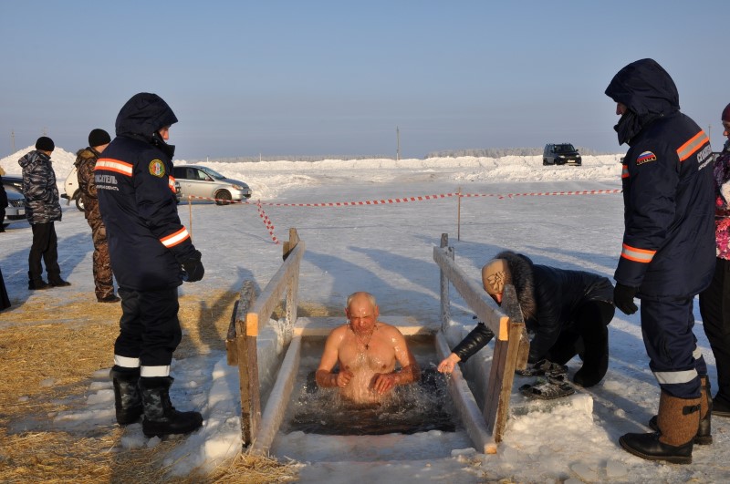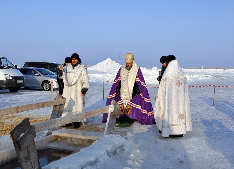 19 января в 00.00 секретарь Карасукской еархии иерей Антоний Баранов с помощниками совершил чин Великого освящения воды в купели, заранее изготовленной на озере в селе Благодатном Карасукского района.