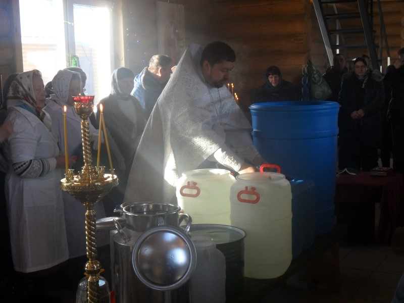 В этот же день вечером в баганском храме 6 человек приняли Таинство Святого Крещения. Весь день до позднего вечера баганцы шли в новый храм за святой крещенской водой, а в подарок получали молитвословы.