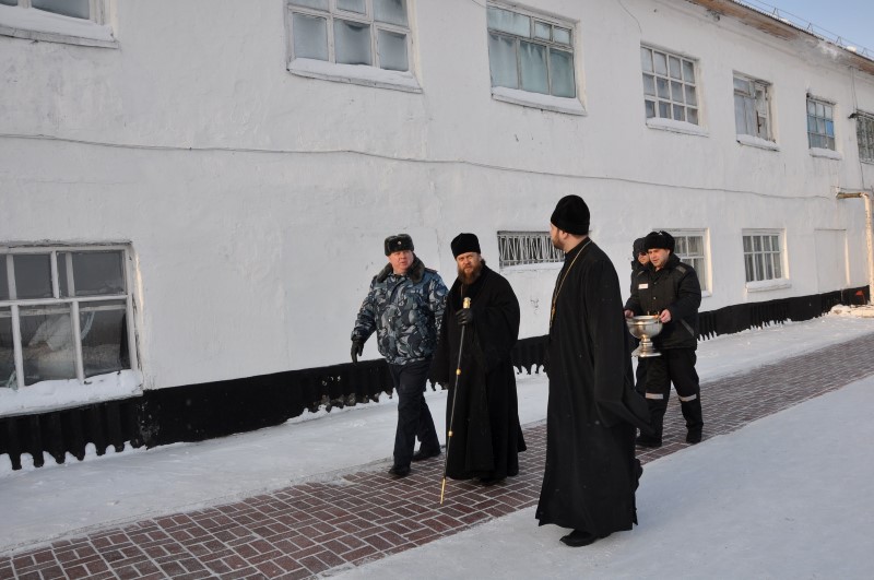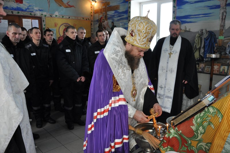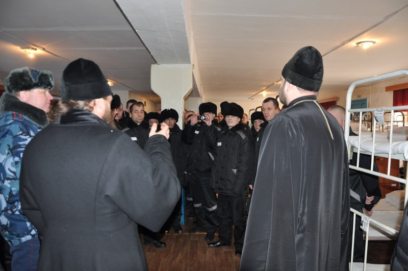 Затем Владыка обратился к заключенным с проповедью, в которой поздравил всех с прошедшими праздниками Рождества Христова и Крещения Господня.