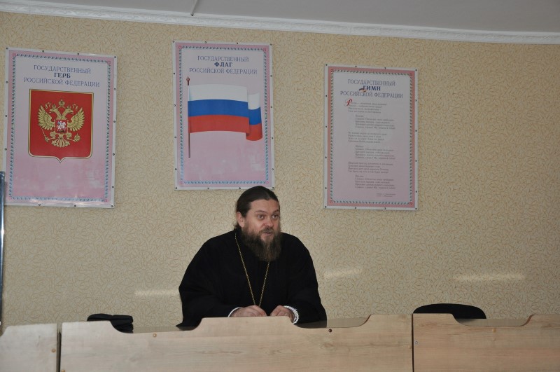 После обеда в этот же день в актовом зале ИК №15 епископ Филипп встретился с сотрудниками этого учреждения, а их здесь работает более 150-ти человек и также провел с ними беседу о православии, о духовной жизни, рассказал о прошедших праздниках, о их значении в жизни человека, а также о том, как подготовиться к Таинствам Исповеди и Причастия.