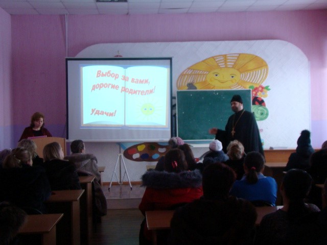 В школах иеромонах Мелхиседек принял участие в родительских собраниях учащихся 3-их классов по выбору модуля ОПК в учебном курсе ОРКСЭ.