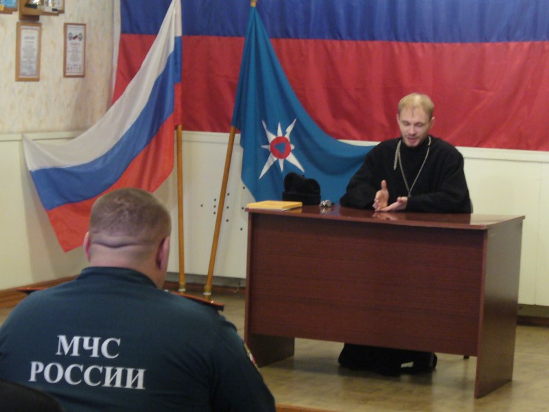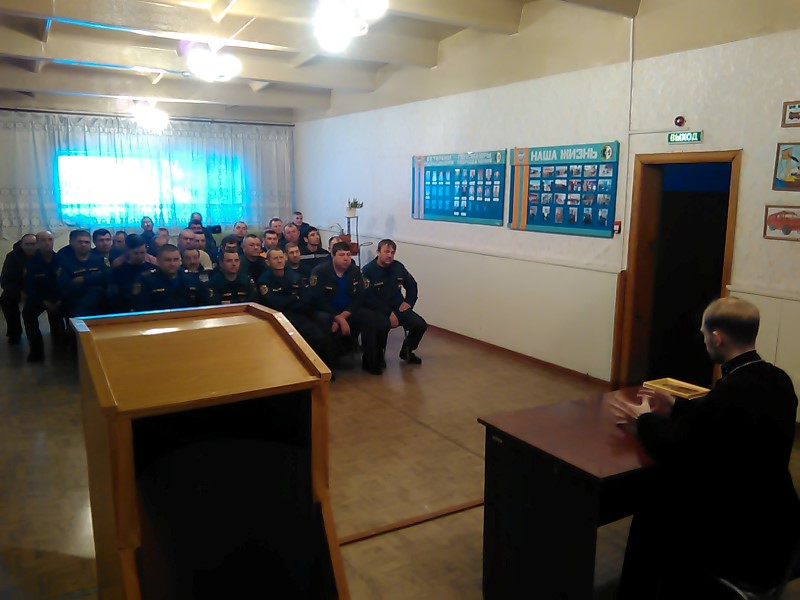 17 февраля в актовом зале здания ПСЧ-56 ФГКУ «10 отряд ФПС по Новосибирской области» секретарь Карасукской и Ордынской епархии Русской Православной Церкви иерей Антоний Баранов провел духовно-нравственную беседу с личным составом 56-ой пожарно-спасательной части, сотрудниками ОНДиПР по Карасукскому району и работниками Карасукского поисково-спасательного отряда.