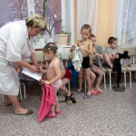 Но в Новосибирской области есть закрытый туберкулезный санаторий и для детей совсем маленьких — детей дошкольного возраста. В течение года здесь проживают 40-50 детей от 4 до 8 лет, имеющих заболевания легочного туберкулеза или находящиеся на профилактики. Дети собраны сюда со всей Новосибирской области, в основном — из неблагополучных семей.