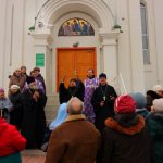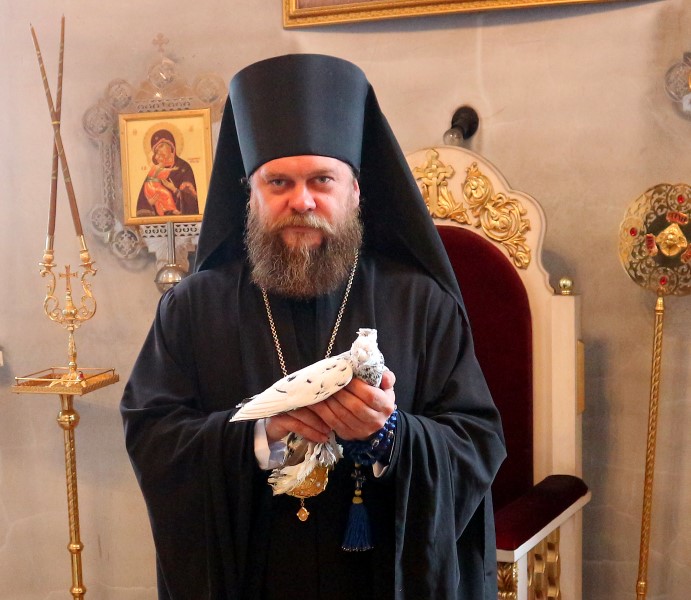 По окончании богослужения Владыка в сопровождении духовенства и прихожан вышел на паперь собора и по доброй старинной традиции выпустил в небо белых голубей.