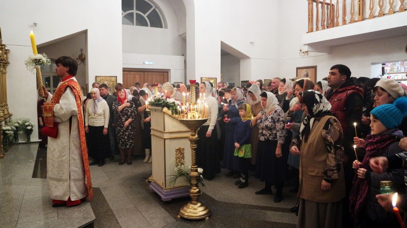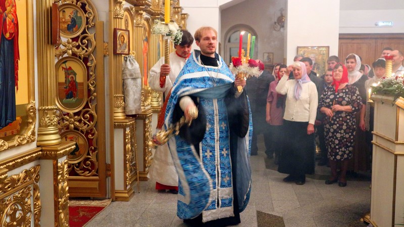 По традиции на утрени прочитали «Слово огласительное святителя Иоанна Златоуста на Святую Пасху» и было прочитано Пасхальное послание Святейшего Патриарха Московского и всея Руси Кирилла и митрополита Тихона.