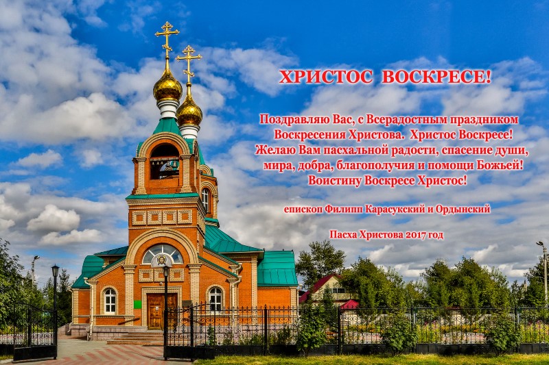 В ночь с 15 на 16 апреля Его Просвященство епископ Филипп возглавил пасхальное богослужение — полуночницу, крестный ход, пасхальную заутреню и Божественную литургию в Кафедральном соборе св. апостола Андрея Первозванного г. Карасука. Ему сослужили секретарь Карасукской епархии иерей Антоний Баранов и иеромонах Мефодий (Андреев).