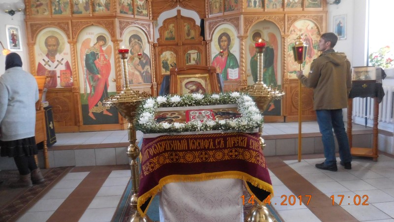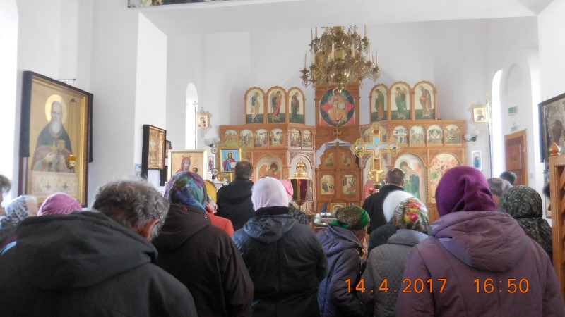 В Страстную Пятницу храм тоже не пустовал. В этот день также установили Иверскую икону Божией Матери — копию как на станции Мочище. Икону подарил нашему храму протоиерей Евгений Зверев. Перед иконой можно ставить свечи, и горит лампадка круглые сутки.