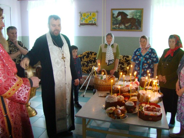 15 апреля/суббота. Накануне праздника Пасхи Христовой иеромонах Мелхиседек (Свистелин), благочинный Центрального округа Карасукской епархии, по традиции посетил дом престарелых города Купино и железнодорожный дом ветеранов.