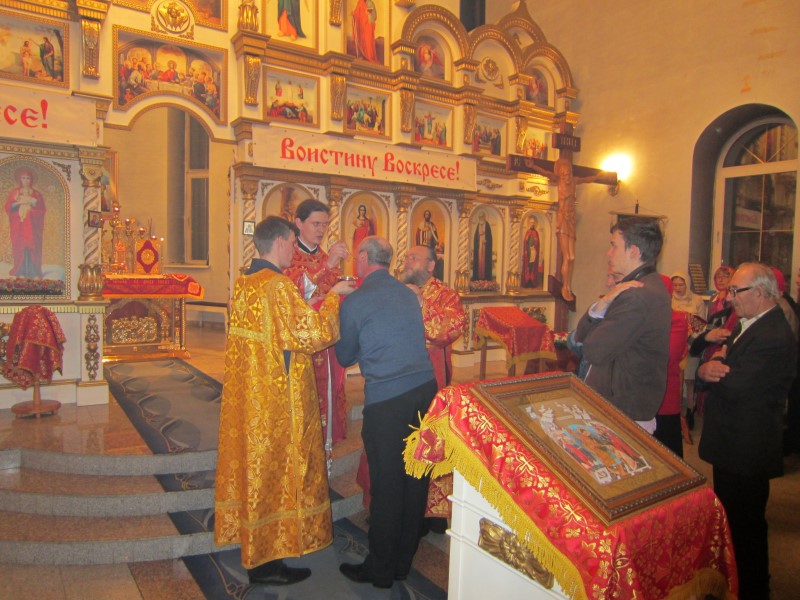 На Литургии по традиции были зачитаны Пасхальные послания Святейшего Патриарха Кирилла, Высокопреосвященнейшего митрополита Тихона и Преосвященнейшего епископа Филиппа.