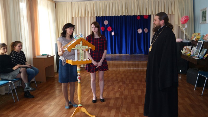 После концерта Владыка побеседовал в каждом центре о празднике Святой Пасхи, о женах-мироносицах, которые первыми увидели воскресшего Спасителя, о чуде схождения благодатного огня накануне православной Пасхи на Гробе Господнем в Иерусалиме, который символизирует нерукотворный свет Воскресения Христова.