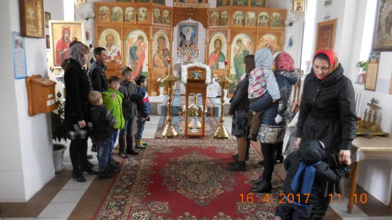 В день Светлого Христова Воскресения в 12 часов ученики пришли в воскресную школу. Они рассказывали стихи о празднике и отгадывали загадки. Им раздали сладкие пасхальные подарки.