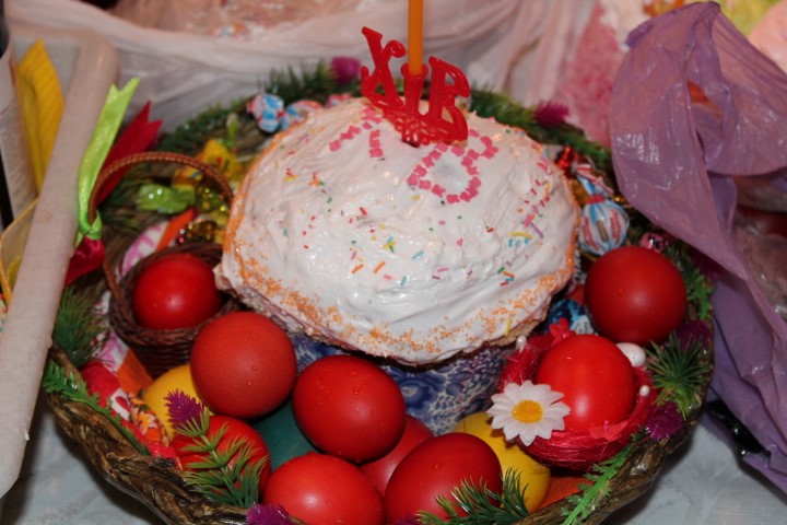 По его окончании батюшка освятил в храме куличи и крашеные яйца.