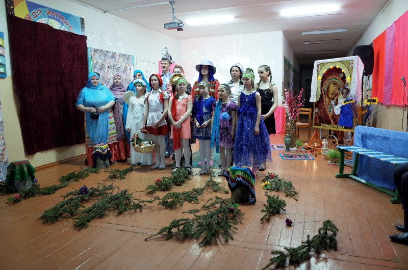Готовилось художественное театрализованное представление задолго до Пасхи. Это был большой совместный труд, где приняли участие и взрослые: прихожане и жители села, учителя, а также школьники. Готовился сценарий, артисты учили роли и проводили репетиции, готовили костюмы, оформлялся большой холл школы, формировалась компьютерная презентация и музыкальное сопровождение.