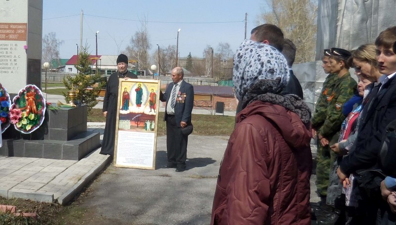 После торжественной части, которая состоялась в Кочковском музее, икону «Чернобыльский Спас» пронесли по улице села до памятника. На митинге выступил заместитель главы района, он выразил слова благодарности ликвидаторам аварии на ЧАЭС. Глава чернобыльцев рассказал о значении иконы. Протоиерей Александр Лупарев — об истории написания этой иконы и освятил икону для памятника.