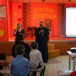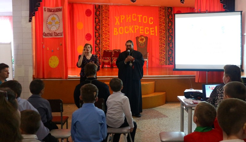 … После концерта Владыка рассказал воспитаникам школы о Светлом Воскресении Христовом.