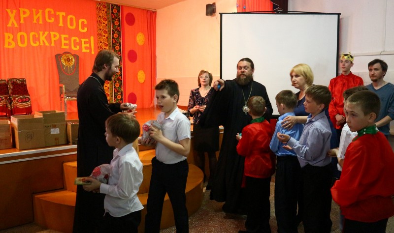 Так закончилось в этом году поздравление детей-сирот в детских домах и в школах-интернатах г. Новосибирска и Новосибирской области с праздником Святой Пасхи.