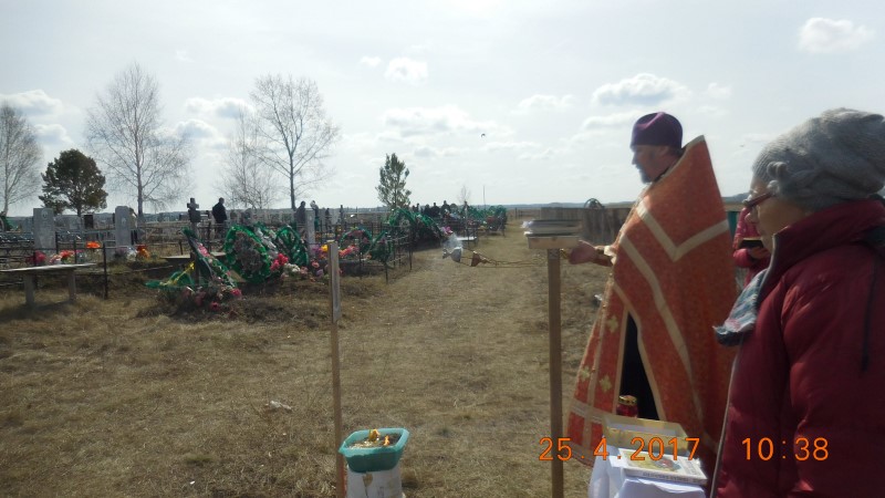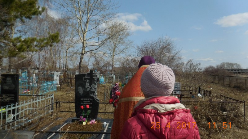 В 10.00 началась панихида на кладбище с. Новоцелинного, а в 11.00 — на Красносибирском кладбище и закончили служение вновь на кладбище Кочковском в 12.00.
