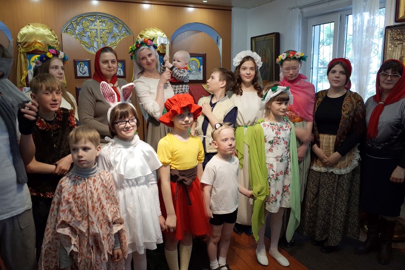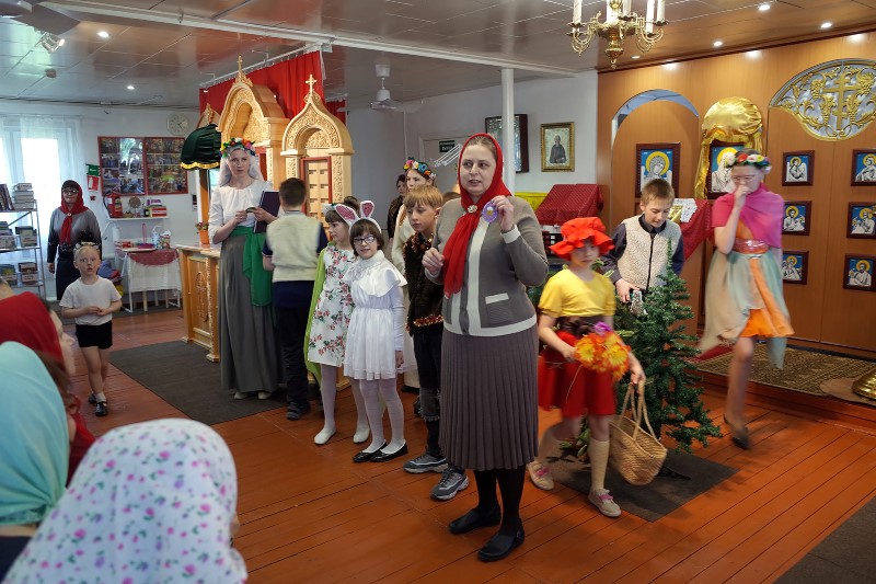 С самого начала пасхальных праздников в приходе во имя прп. Сергия Радонежского было много событий, почему решено было отметить торжеством христианской радости именно окончание дней празднования Святой Пасхи и ко Дню славянской письменности и культуры: показать спектакль учеников воскресной школы и взрослых прихожан, подготовленный под руководством матушки Ксении Борисовны Лебедевой.