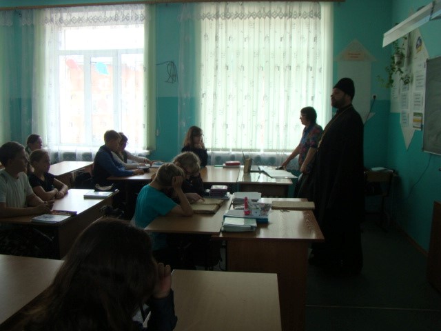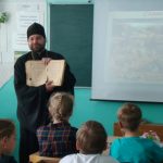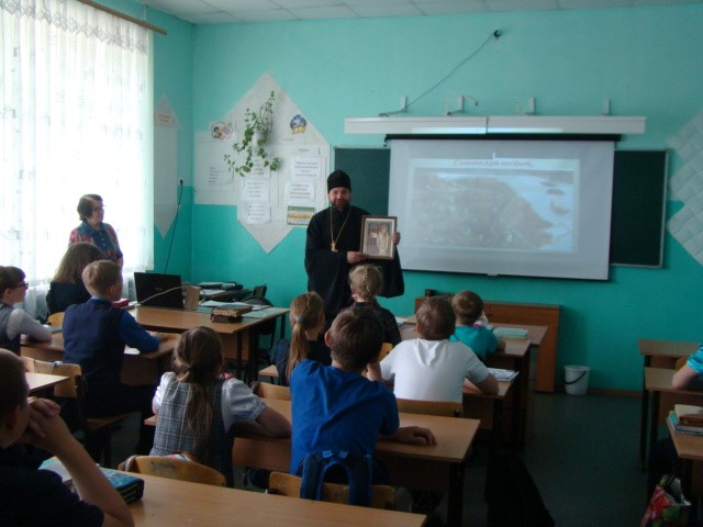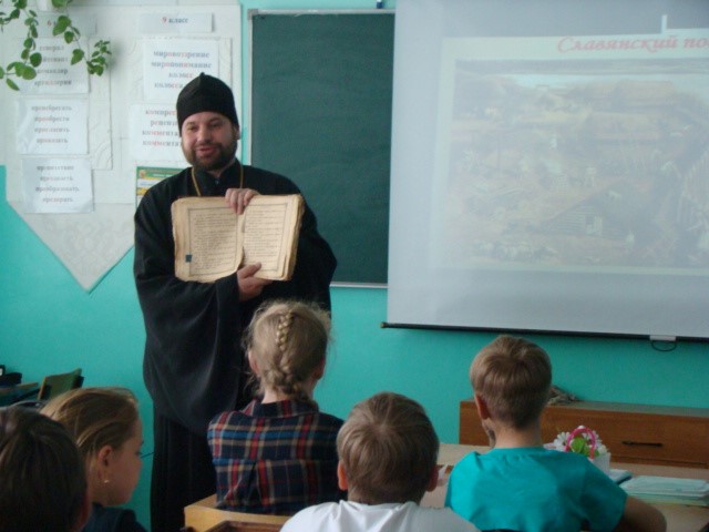 Гостем мероприятия был иеромонах Мелхиседек (Свистелин), благочинный Центрального округа, руководитель Отдела образования Карасукской епархии. С большим интересом ребята слушали его выступление о великом значении открытия святых Кирилла и Мефодия, о том что, благодаря созданной письменности, появилась возможность передавать из поколения в поколение накопленный опыт, Слово Божие переведено на славянский язык и стало доступно. Они рассматривали церковно-славянскую азбуку, бережно передавали из рук в руки Евангелие, один из памятников древности, хранящийся в храме во имя святого апостола и евангелиста Луки.