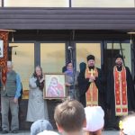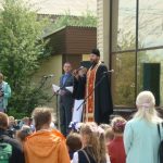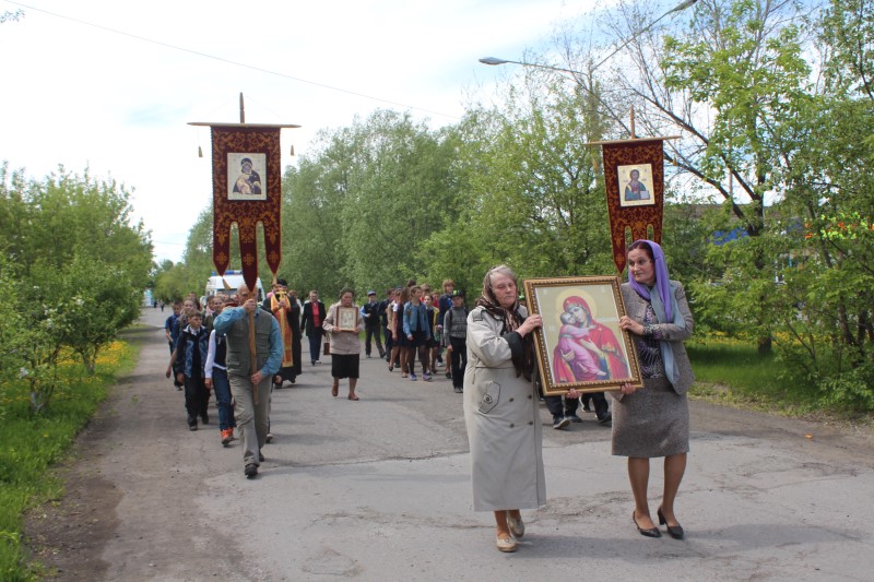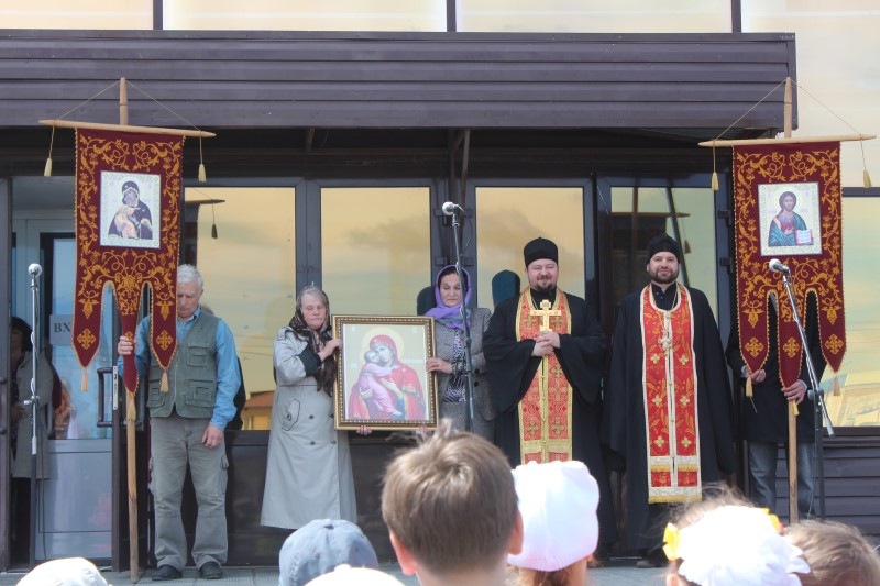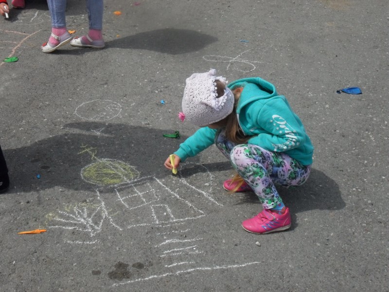По окончании концерта для ребят был проведён конкурс «Рисунок на асфальте». С большим увлечением малыши из детского сада и школьники изображали цветными мелками на асфальте различные картины: храмы, цветы, книги. Всем юным художникам были вручены сладкие призы. А Крестный ход продолжился до храма в честь святых благоверных князей-страстотерпцев Бориса и Глеба, где завершился праздничным молебном.