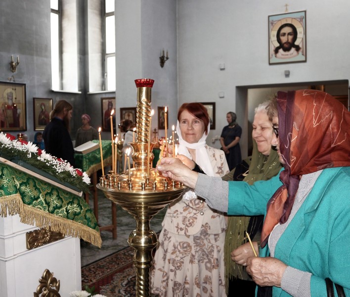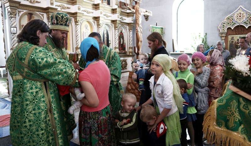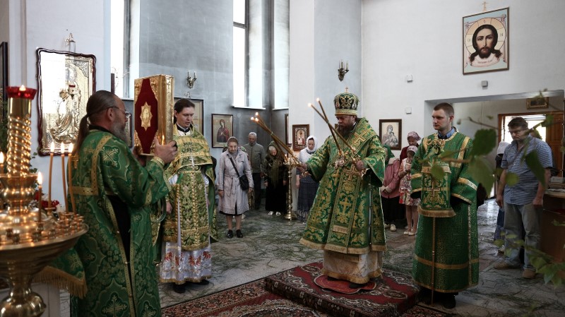 В приветственном слове по окончании богослужения Владыка поздравил всех с Днем Святой Троицы и престольным праздником. Он отметил, что праздник Пятидесятницы заключает в себе двойное торжество: во славу Пресвятой Троицы и во славу Пресвятого Духа, видимо сошедшего на апостолов в виде огненных языков и запечатлевших Новый вечный Завет Бога с человеком и с тех пор не покидающий верующих во Святую Троицу и что этот день является днем рождения Матери Церкви.