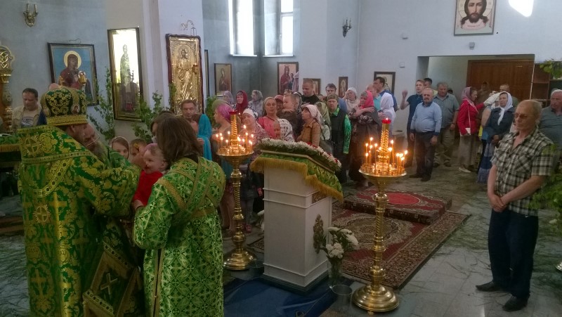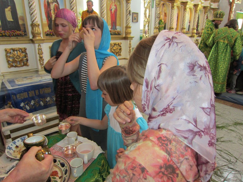 По окончании Литургии многие прихожане причастились Христовых Тайн. В завершении богослужения после коленопреклоненных молитв было славление праздника, затем Владыка окропил всех святой водой. Также в своем слове правящий архиерей поздравил всех с праздиком Святой Троицы и престольным праздником. Затем всех пригласили в трапезную.