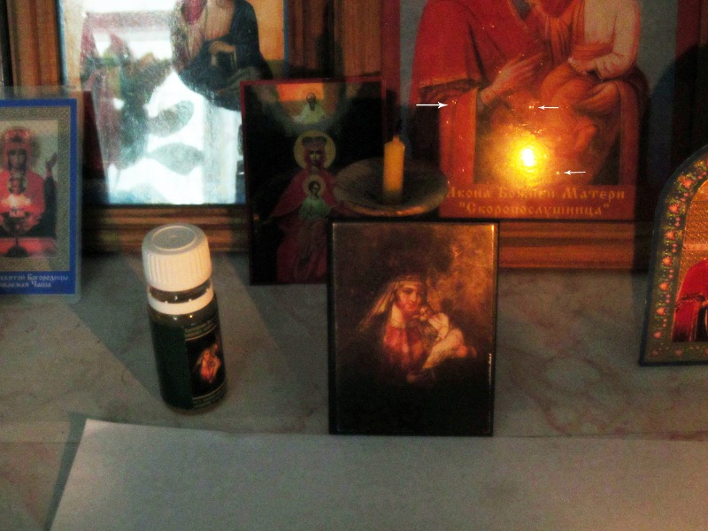 Со слов настоятеля храма преп. Сергия Радонежского иерея Андрея Гусева в селе Довольное в доме одной благочестивой прихожанки нашего храма Толстых Елизаветы Николаевны замироточили три иконы: Иверская Божиея Матерь, Скоропослушница, Избавление от бед страждущих. Батюшка прислал фото икон, а Елизавета Николаевна думает, что это особая милость Божия, что наконец-то в с. Довольное началось строительство храма.