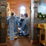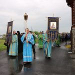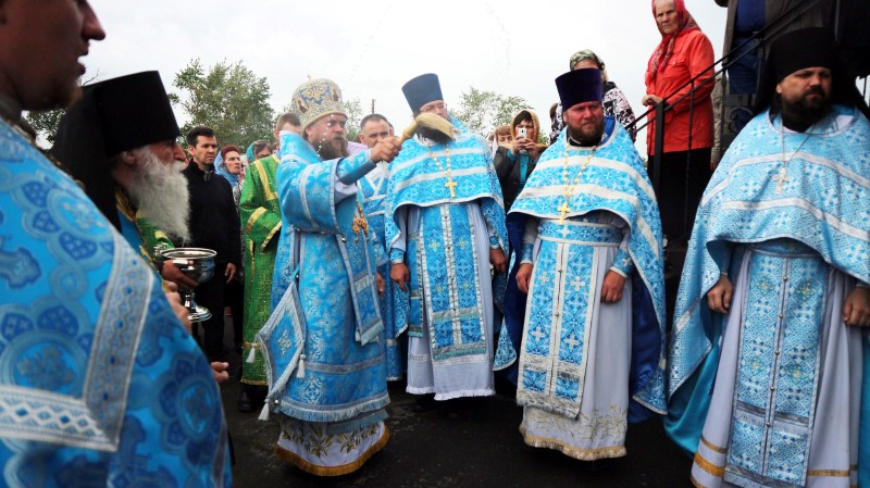 11 июня/воскресение. В Неделю Всех Святых Его Преосвященство епископ Филипп с духовенством Северного благочиния совершил великое освящение храма в честь Покрова Пресвятой Богородицы с. Верх-Каргата Здвинского района. После того как был освящен престол и весь храм изнутри (каждением, молитвою, краплением святой водой и миропомазанием стен) был совершен крестный ход вокруг храма. При этом шествии храм кропили святой водой. И после этого во вновь освященном храме была отслужена первая Божественная литургия.