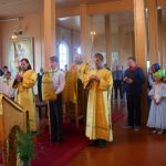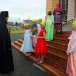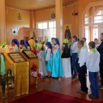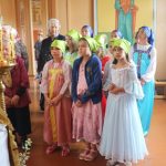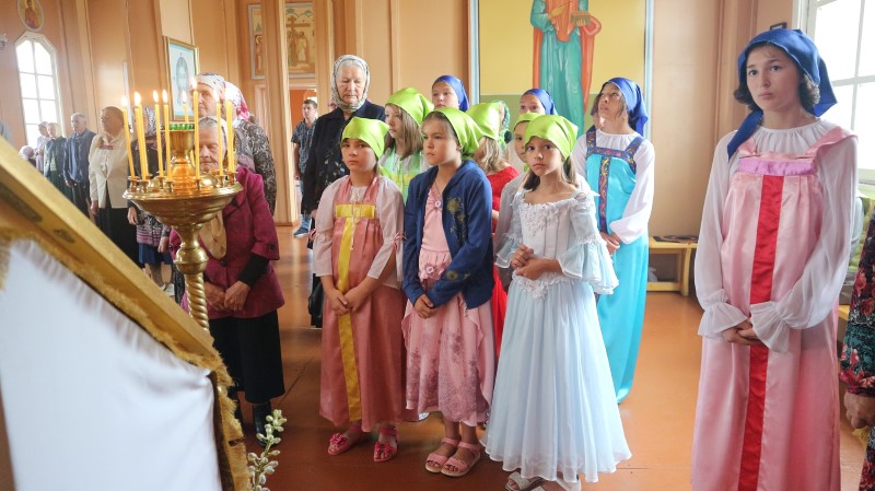 Дети православного лагеря были одеты в русские народные костюмы. За Литургией ребята пономарили и ипподъяконствовали у Владыки в алтаре. В Таинстве Евхаристии все дети причастились Святых Христовых Таин.