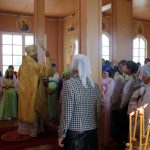 За Литургией вместе с прихожанами молились дети православного лагеря во имя Архистратига Михаила. Служба проходила в восстановленном храме, в котором Владыка в прошлом году совершил чин освящения храма.