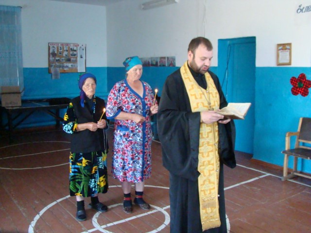 По окончании молебна иеромонах Мелхиседек окропил прихожан святой водой и благословил их достойно подготовиться к великому событию — освящению храма в их селе.