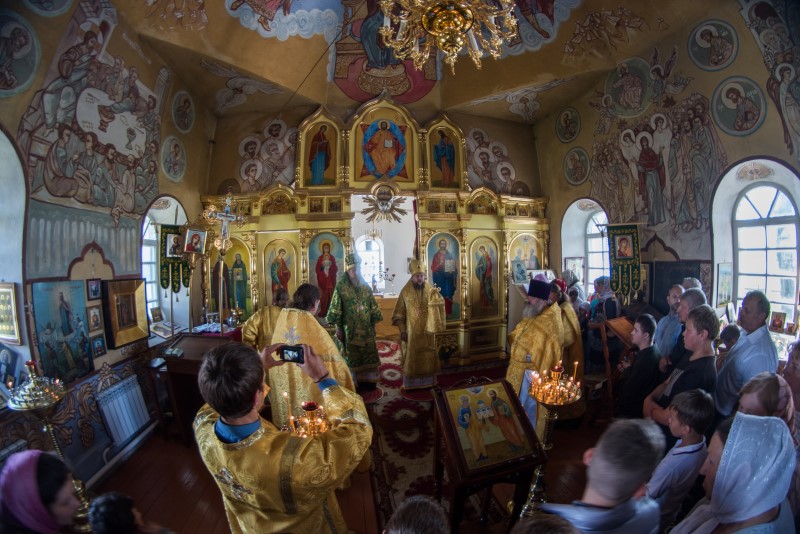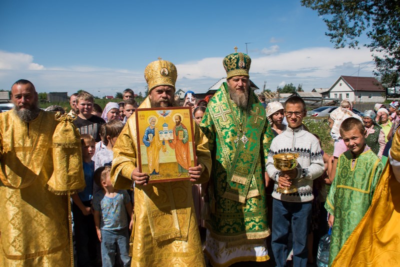 12 июля/среда. В день памяти свв. первоверховных апостолов Петра и Павла, в день престольного праздника, в храме на острове с. Чингисы в 09.00 началась Божественная литургия, которую возглавили два епископа: Его Преосвященство Филиппп, епископ Карасукский и Ордынский, и Его Преосвященство Иоанн, епископ Вокутинский и Усинский, им сослужили иерей Константин Карамышев и иерей Сергий Гранкин.