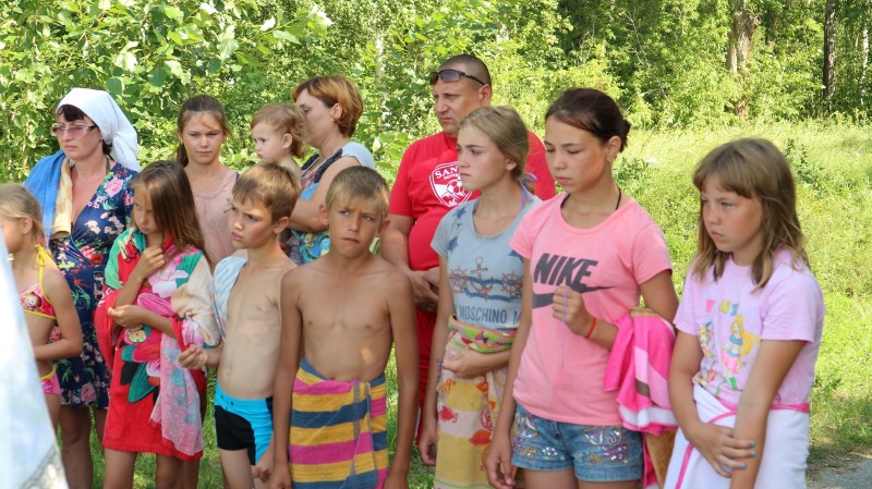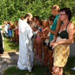 Иерей Антоний и иеромонах Мефодий освятили воду в озере, затем прочитали молитву на оглашение. Епископ Филипп вошел в озеро и все крещаемые дети по одному подходили к нему и принимали Таинство Крещения. А священники на берегу помазывали всех Святым Миром.