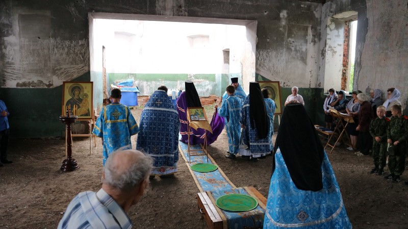 И это также единственный храм нашей епархии, который до сих пор находится в таком горестном запустении. И когда один 14-й летний ребенок, нигде такого ранее не видевший, после богослужения спросил иеромонаха Мелхиседека: «Что же это такое? Почему храм в таком жалком состоянии?», то батюшка объяснил ему, что этот храм так пострадал во время Октябрьской революции, о которой этот ребенок до сих пор ничего не знает, но теперь увидил ее последствия.
