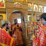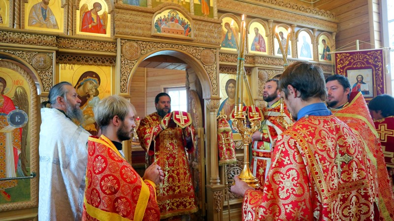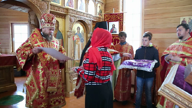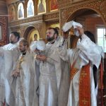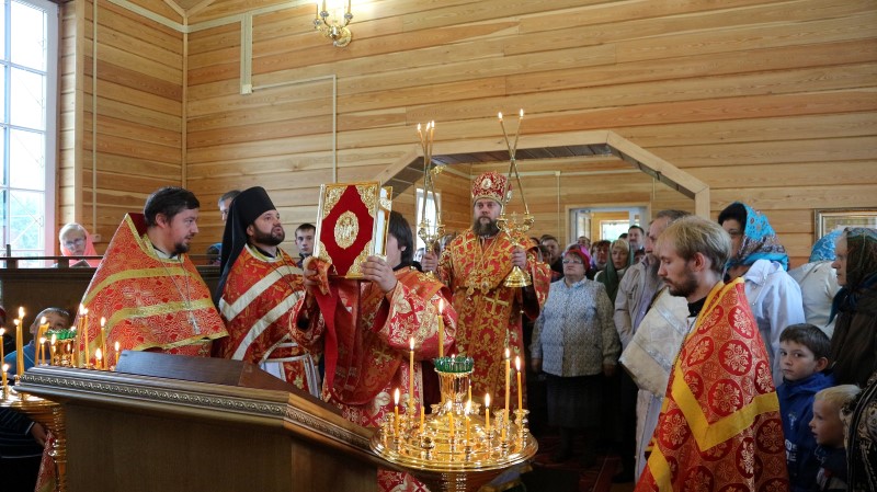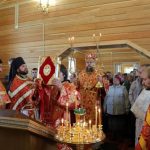 По окончании Литургии состоялся молебен и крестный ход вокруг храма, епископ Филипп прочитал молитву на освящение храма и затем дом Божий вутри и снаружи был окроплен святой водой.