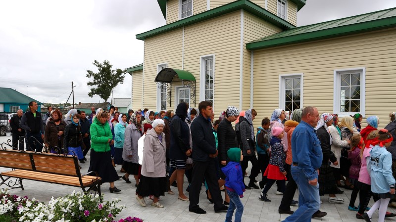 За Божественной литургией молились множество паломников, приехавших на автобусах из разных районов Новосибирской области, а также местные жители: взрослые и дети.