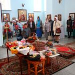 По окончании Литургии состоялся молебен и были освящены начатки плодов, по его завершении Владыка окропил всех святой водой..