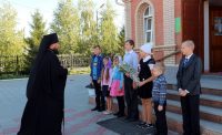 По окончании Литургии Владыка отслужил молебен на начало учения отроков — богослужебный чин, за которым возносятся молитвы о ниспослании помощи Божией всем учащим и учащимся, а также произнес краткую молитву о даровании ученикам духа премудрости и разума, о понимании детьми учения Слова Божьего — затем окропил всех святой водой.