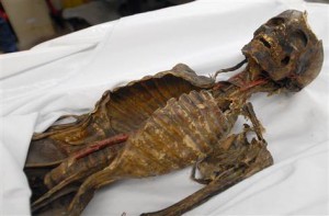 5 июля 2012г. вблизи улицы Ленинская поселка Семибратово Ростовского района в траве были обнаружены полиэтиленовые мешки, скрепленные между собой скотчем, в которых находился обезглавленный труп мужчины без правой руки в мумифицированном состоянии. Сегодня выяснились шокирующие подробности появления мумии.