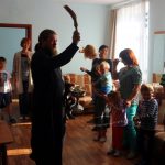 Владыка также провел с детьми духовную беседу, благословил их на хорошую учебу, окропил святой водой и раздал детям сладкие подарки и нательные крестики тем, у кого их в данный момент нет