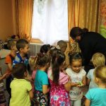 Он также окропил детей святой водой и раздал им на память сладкие подарки и нательные крестики тем, кто их в данный момент не имеет.