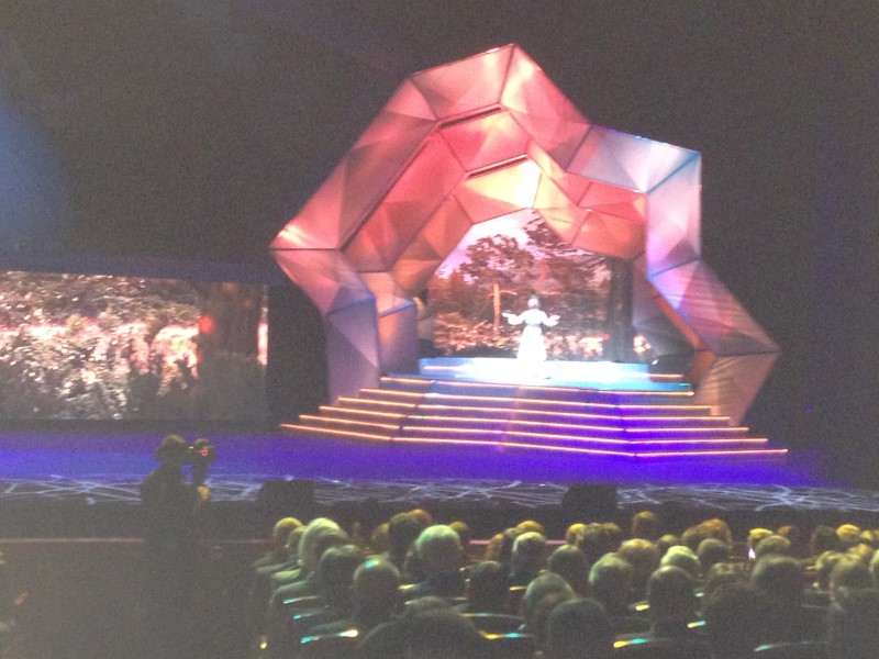 В концертной программе приняли участие известные артисты театра и кино, уроженцы г. Новосибирска, в их числе — российская певица, актриса и телеведущая Пелагея Ханова. Она исполнила три русских народных песни. Со сцены Пелагея поздравила жителей нашей области с юбилеем и сказала своим землякам, как много хорошего в жизни дал ей город Новосибирск, город ее детства, ее малая родина.