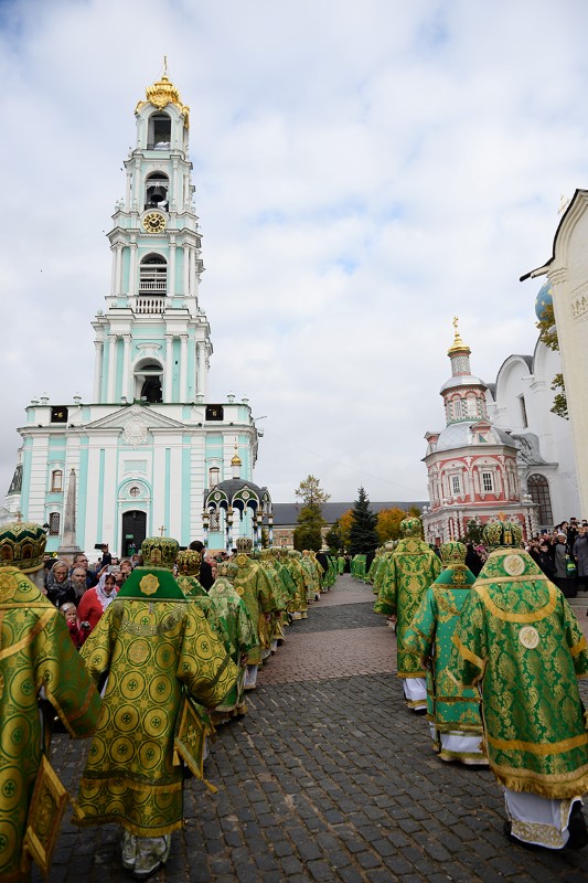 По традиции в этот день в Троице-Сергиевой лавре собрались иерархи Московского Патриархата. В Лавру преподобного Сергия также прибыли участники и гости выездного заседания Комитета представителей Поместных Православных Церквей при Европейском Союзе, которое по благословению Святейшего Патриарха Кирилла состоялось 6 октября в Отделе внешних церковных связей в Москве.